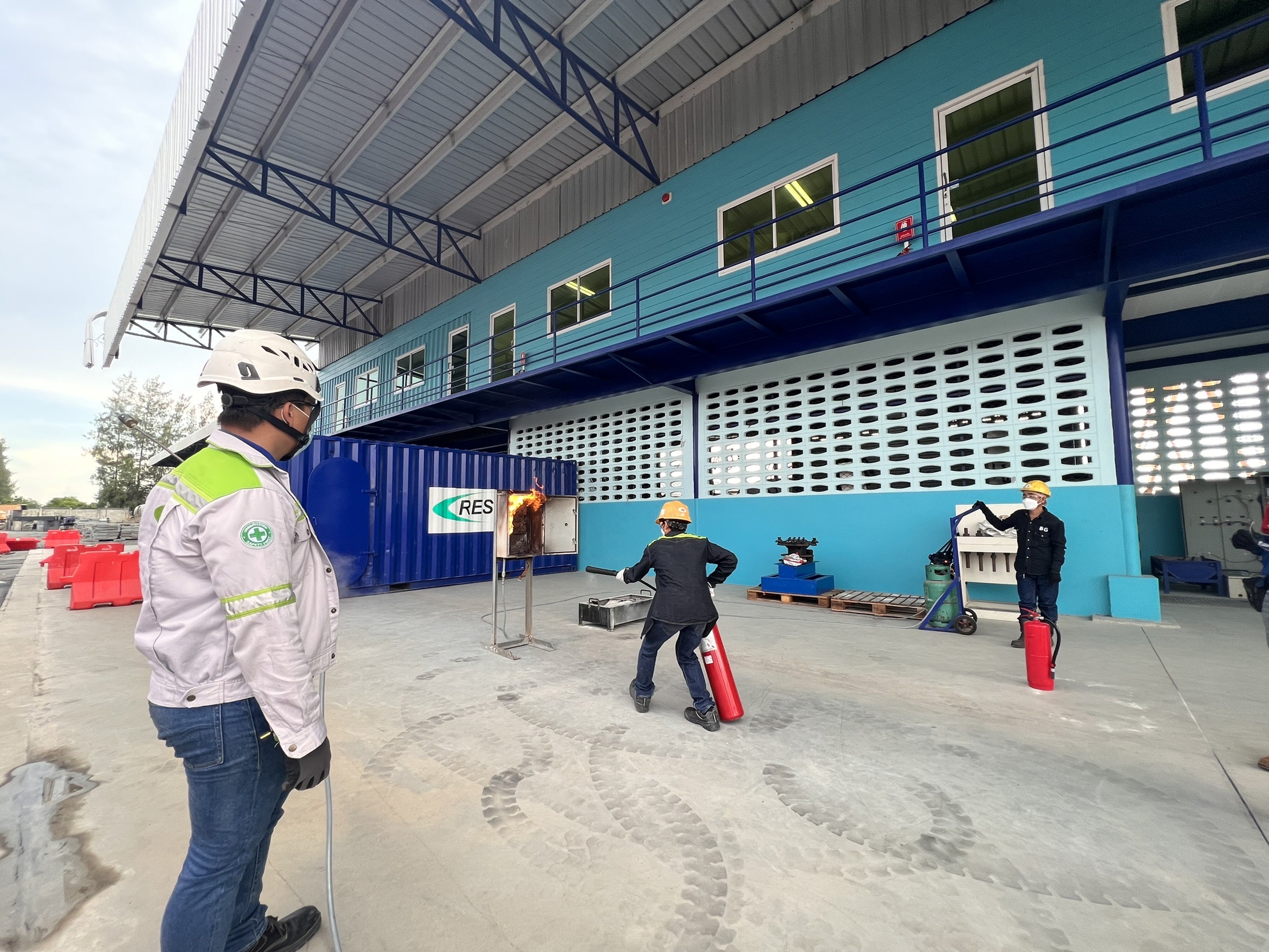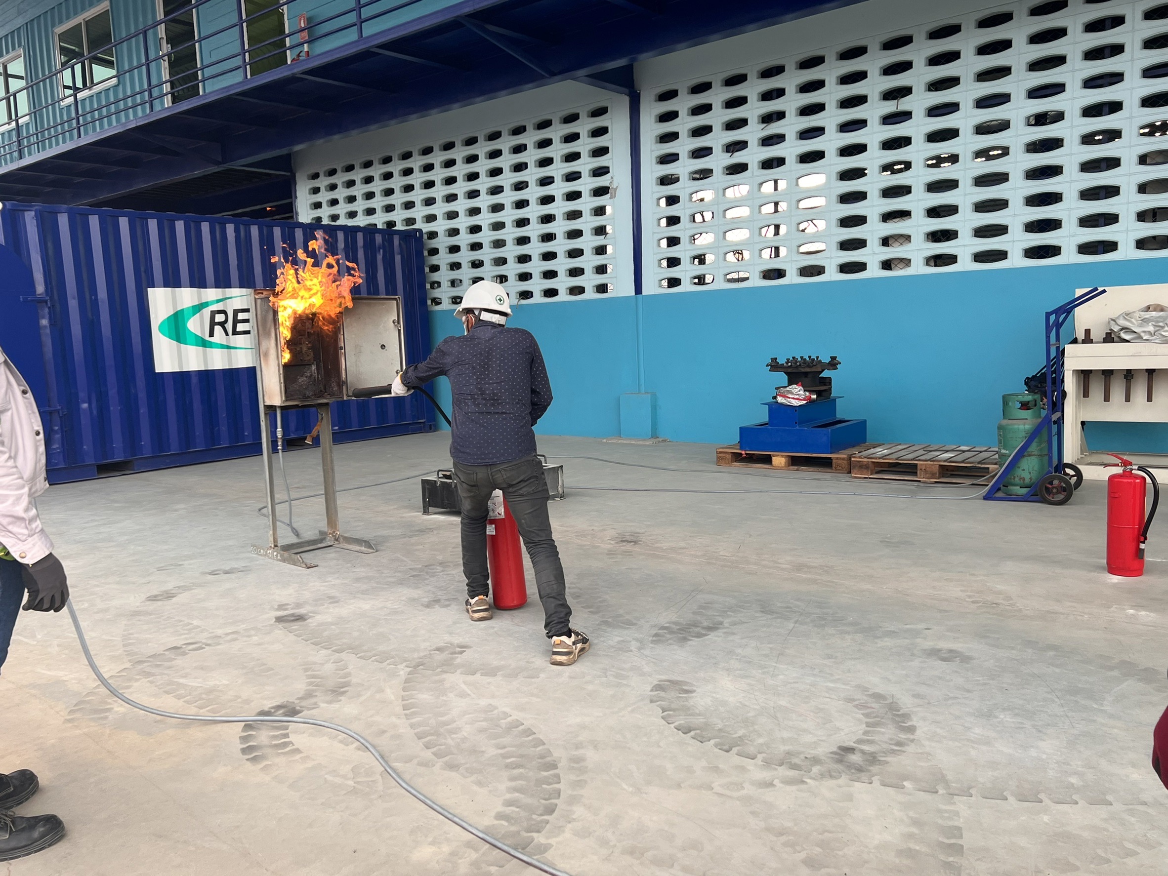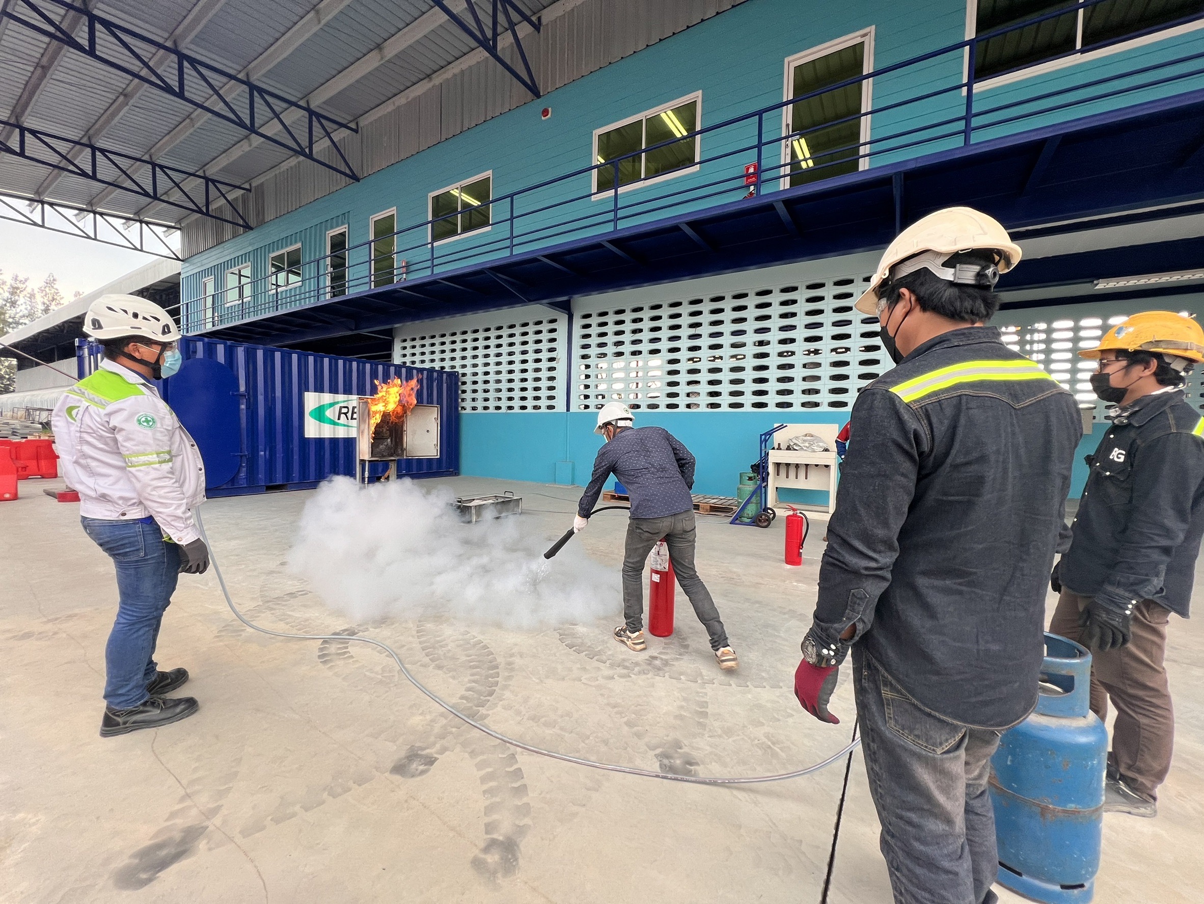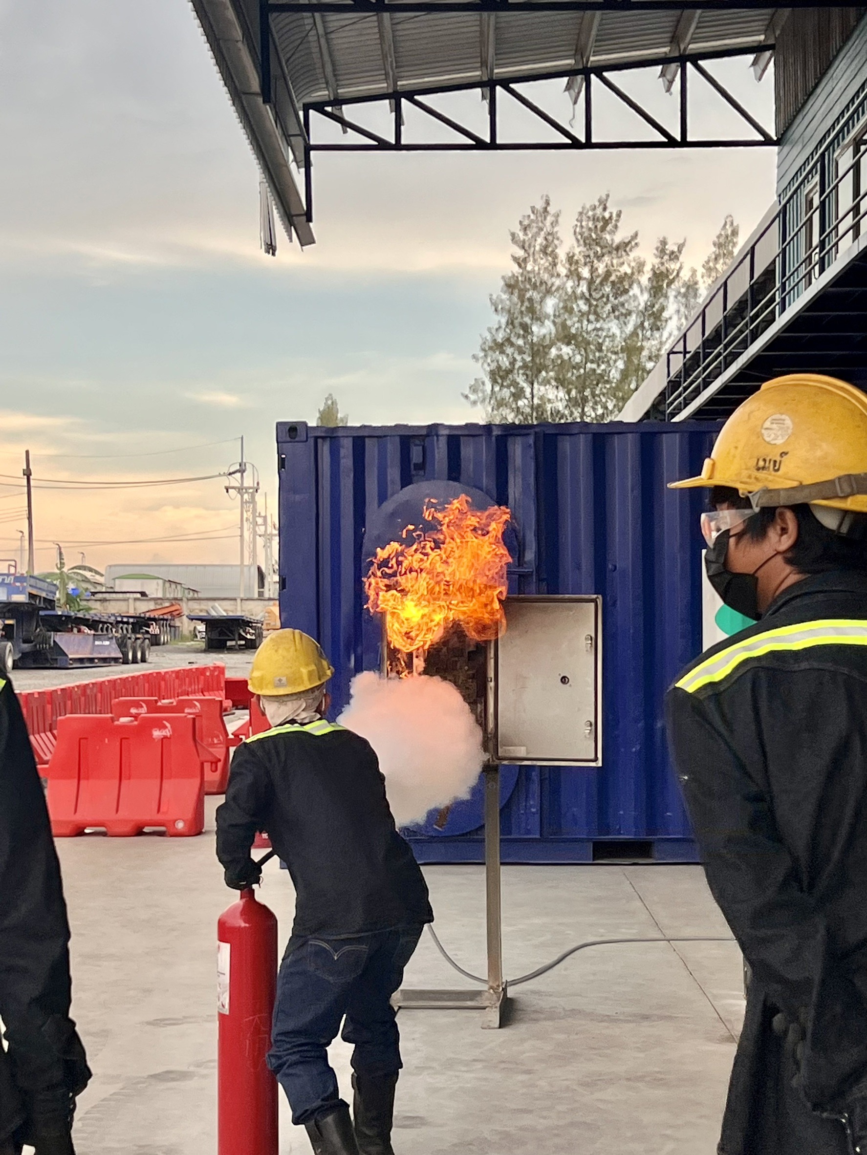 If the incident is judged to be safe, the participants should be able to efficiently extinguish an initial fire by using basic hand held firefighting equipment.